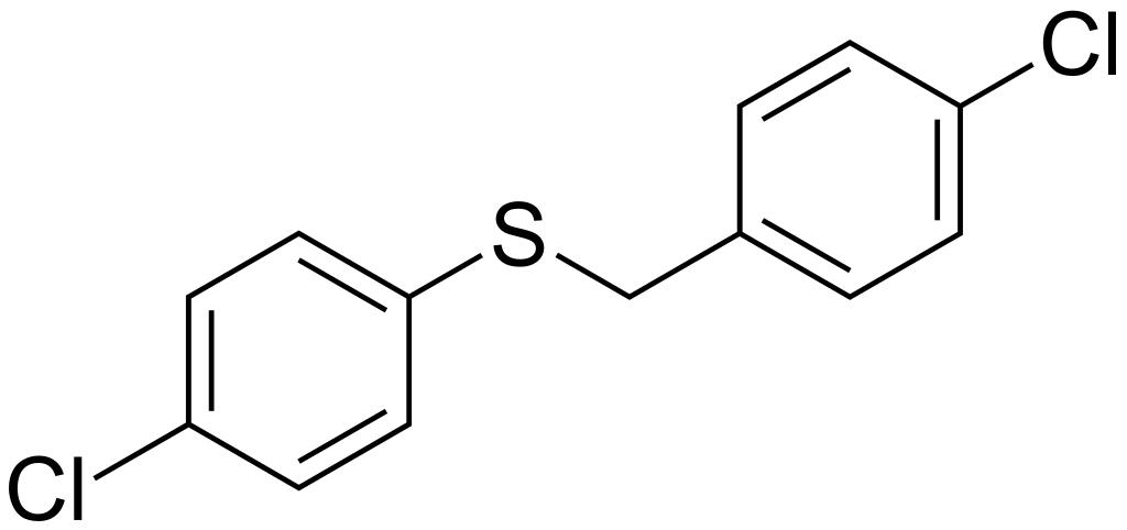 | Keywords: (4-chlorobenzyl)(4-chlorophenyl)sulfane 200.svg validSVG Structure of 4-chlorobenzyl 4-chlorophenyl sulfane Own 2014-05-27 Emeldir <span class signature-talk ></span> Chemical structure verified https //upload wikimedia org/wikipedia/commons/f/f3/ 284-chlorobenzyl 29 284-chlorophenyl 29sulfane_200 svg 1S/C13H10Cl2S/c14-11-3-1-10 2-4-11 9-16-13-7-5-12 15 6-8-13/h1-8H 9H2 ZHLKXBJTJHRTTE-UHFFFAOYSA-N 103-17-3 Synonyms <small><nowiki> 4-Chloor-benzyl - 4-chloor-fenyl -sulfide DUTCH 4-Chlor-benzyl - 4-chlor-phenyl -sulfid GERMAN 4-Cloro-benzil - 4-cloro-fenil -solfuro ITALIAN 1-Chloro-4- 4-chlorophenyl methyl thio benzene 1-Chloro-4- 4-chlorophenyl methylthiobenzene 4-Chlorobenzyl p-chlorophenyl sulfide 4-Chlorophenyl 4'-chlorobenzyl sulfide Benzene 1-chloro-4- 4-chlorophenyl methylthio- 9CI Chloorbenzide DUTCH Chloracid VAN Chlorbensid GERMAN Chlorbenside chlorbenside Chlorbenxide Chlorbenzide Chloroparacide Chloroparacide R Chlorparacide Chlorsulphacide Chlorsulphacide R CP 20 ENT 20 696 HRS 860 Mitox Mitox R p p'-Dichlorodiphenyl sulfide p-Chlorobenzyl p-chlorophenyl sulfide RD 2195 Sulfide p-chlorobenzyl p-chlorophenyl 8CI Sulfure de 4-chlorobenzyle et de 4-chlorophenyle FRENCH WLN GR DS1R DG</nowiki></small> PD-chem Thiophenol ethers Monochlorobenzenes |