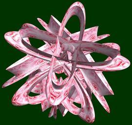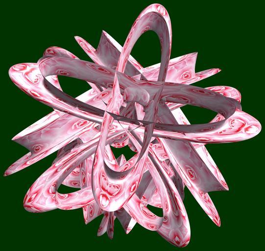 Keywords: mathematica 3d cg parametricplot3d texture torus 輪環 りんかん ドーナツ どーなつ 五芒星 ごぼうせい 五光星 ごこうせい 五稜星 ごりょうせい code program algorithm コード プログラム アルゴリズム pentagram geometric sculpture geometricsculpture shape geometry sculpture mapping テクスチャ マッピング 模様 もよう abstract 抽象 ちゅうしょう アブストラクト design pattern デザイン パターン graphic グラフィック グラフィクス structure 意匠 構造 symmetry 対称性 たいしょうせい シンメトリー 対称 たいしょう algorithm コード outdoor blossom black background plant pastel a = 2; (* center hole size of a torus *) b = 5; (* penta-torus *) c = 1; (* distance from the center of rotation *) d = 4; (* number of torus *) h = 1; (* height of a torus *) SetOptions[ParametricPlot3D, PlotRange -> Full, Mesh -> None, Boxed -> False, Axes -> False, PlotPoints -> 400, ImageSize -> 3000, Background -> Darker[Green, 0.8], PlotStyle -> Directive[Specularity[White, 30], Texture[Import["D:/tmp/86.jpg"]]], TextureCoordinateFunction -> ({#4, #5 2 Pi} &), Lighting -> "Neutral"]; f[v_] := Cos[2 Cos[Cos[Cos[v]]]]; x = (a - f[t] - Sin[b s]) Cos[s + 3 Pi/(4 b)] + c; y = (a - f[t] - Sin[b s]) Sin[s + 3 Pi/(4 b)] + c; z = (a - Sin[t/2] - h Sin[b s]); rot = Table[{x, y, z}.RotationMatrix[2 i Pi/d, {1, 1, 1}], {i, d}]; ParametricPlot3D[rot, {t, 0, 2 Pi}, {s, 0, 2 Pi}] (*--- The Texture *) a = 2; (* center hole size of a torus *) b = 5; (* penta-torus *) c = 1; (* distance from the center of rotation *) d = 4; (* number of torus *) h = 1; (* height of a torus *) SetOptions[ParametricPlot3D, PlotRange -> Full, Mesh -> None, Boxed -> False, Axes -> False, PlotPoints -> 400, ImageSize -> 3000, Background -> Darker[Green, 0.8], PlotStyle -> Directive[Specularity[White, 30], Texture[Import["D:/tmp/86.jpg"]]], TextureCoordinateFunction -> ({#4, #5 2 Pi} &), Lighting -> "Neutral"]; f[v_] := Cos[2 Cos[Cos[Cos[v]]]]; x = (a - f[t] - Sin[b s]) Cos[s + 3 Pi/(4 b)] + c; y = (a - f[t] - Sin[b s]) Sin[s + 3 Pi/(4 b)] + c; z = (a - Sin[t/2] - h Sin[b s]); rot = Table[{x, y, z}.RotationMatrix[2 i Pi/d, {1, 1, 1}], {i, d}]; ParametricPlot3D[rot, {t, 0, 2 Pi}, {s, 0, 2 Pi}] (*--- The Texture *) |