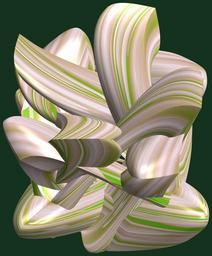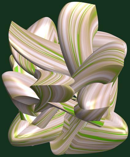 Keywords: mathematica 3d cg parametricplot3d texture torus code program algorithm tri-torus tritorus プログラム コード アルゴリズム 輪環 りんかん ドーナツ どーなつ 三芒星 さんぼうせい geometric sculpture geometricsculpture shape geometry sculpture mapping テクスチャ マッピング 模様 もよう abstract 抽象 ちゅうしょう アブストラクト design pattern デザイン パターン graphic グラフィック グラフィクス structure 意匠 構造 symmetry 対称性 たいしょうせい シンメトリー 対称 たいしょう pastel black background photo border serene food indoor a = 2; (* center hole size *) b = 3; (* tri-torus *) c = 2; (* distance from the center of rotation *) d = 4; (* number of torus *) h = 2; (* height of a torus *) SetOptions[ParametricPlot3D, PlotRange -> Full, Mesh -> None, Boxed -> False, Axes -> False, PlotPoints -> 400, ImageSize -> 3000, Background -> RGBColor[{20, 50, 30}/255], PlotStyle -> Directive[Specularity[White, 70], Texture[Import["D:/tmp/862.jpg"]]], TextureCoordinateFunction -> ({#4 + #5, #5 / Pi} &), Lighting -> "Neutral"]; f[v_] := TriangleWave[{-1, 1}, v/(2 Pi)]; g[v_] := TriangleWave[{-1, 1}, v/(2 Pi) + 1/4]; x = (a - g[t] - f[b s]) g[s] + c; y = (a - g[t] - f[b s]) f[s] + c; z = (a - Sin[t] - h Sin[b s]); rm = Table[{x, y, z}.RotationMatrix[2 i Pi/d, {1, 1, 1}], {i, d}]; ParametricPlot3D[rm, {t, 0, 2 Pi}, {s, 0, 2 Pi}] (*--- The Texture *) a = 2; (* center hole size *) b = 3; (* tri-torus *) c = 2; (* distance from the center of rotation *) d = 4; (* number of torus *) h = 2; (* height of a torus *) SetOptions[ParametricPlot3D, PlotRange -> Full, Mesh -> None, Boxed -> False, Axes -> False, PlotPoints -> 400, ImageSize -> 3000, Background -> RGBColor[{20, 50, 30}/255], PlotStyle -> Directive[Specularity[White, 70], Texture[Import["D:/tmp/862.jpg"]]], TextureCoordinateFunction -> ({#4 + #5, #5 / Pi} &), Lighting -> "Neutral"]; f[v_] := TriangleWave[{-1, 1}, v/(2 Pi)]; g[v_] := TriangleWave[{-1, 1}, v/(2 Pi) + 1/4]; x = (a - g[t] - f[b s]) g[s] + c; y = (a - g[t] - f[b s]) f[s] + c; z = (a - Sin[t] - h Sin[b s]); rm = Table[{x, y, z}.RotationMatrix[2 i Pi/d, {1, 1, 1}], {i, d}]; ParametricPlot3D[rm, {t, 0, 2 Pi}, {s, 0, 2 Pi}] (*--- The Texture *) |
