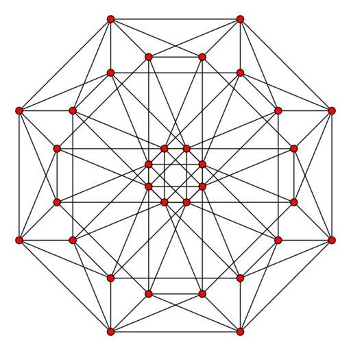 Keywords: 4-cube t1 B4.svg en en Rectified Tesseract graph in B4 en Coxeter plane own Tomruen Rectified 8-cell; Coxeter plane graphs Set of colored Coxeter plane graphs; 32 vertices