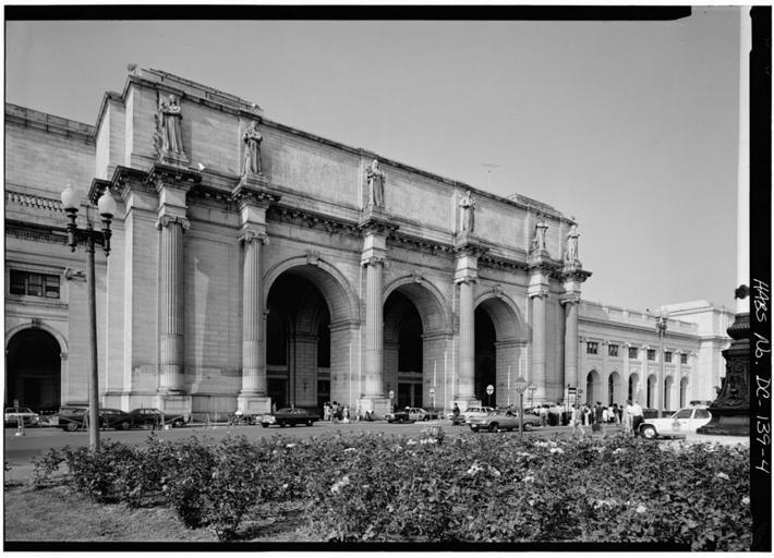 | Keywords: 4. SOUTH FRONT, MAIN ENTRANCE PAVILION, OBLIQUE VIEW 1974 - Union Station 030013pv.jpg  en Union Station 50 Massachusetts Avenue Northeast Washington District of Columbia DC 4 SOUTH FRONT MAIN ENTRANCE PAVILION OBLIQUE VIEW 1974 5 x 7 in accession number Reproduction Number HABS DC WASH 536--4 Call Number HABS DC WASH 536--4 institution Library of Congress Prints and Photographs Division Washington D C 20540 USA http //hdl loc gov/loc pnp/pp print LOC-image hhh dc0254/photos 030013p creator Jack Boucher Rights Advisory No known restrictions on images made by the U S Government; images copied from other sources may be restricted http //www loc gov/rr/print/res/114_habs html 38 895 -77 03667 DC WASH 536--4 Union Station Washington D C Uploaded with UploadWizard |