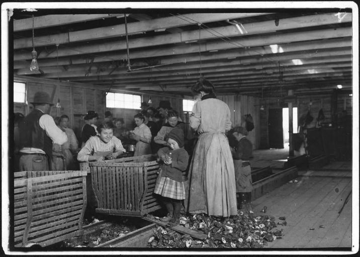 | Keywords: nara:arcid=523418 u.s. national archives usnationalarchives lewis hine lewishine blackandwhite monochrome photo border black and white Original Caption: 4 year old Mary, who shucks oysters, (two pots a day). Tends the baby when not working. The boss said that next year Mary will work steady as the rest of them. The mother is the fastest shucker in the place. Earns $1.50 a day. Works part of the time with her sick baby in her arms. Father works on the docks. Dunbar, La, February 1911 U.S. National Archives’ Local Identifier: 102-LH-2059 Photographer: Hine, Lewis Subjects: Child Labor National Child Labor Committee Working Conditions Factory Persistent URL: research.archives.gov/description/523418 Repository: Still Picture Records Section, Special Media Archives Services Division (NWCS-S), National Archives at College Park, 8601 Adelphi Road, College Park, MD, 20740-6001. For information about ordering reproductions of photographs held by the Still Picture Unit, visit: www.archives.gov/research/order/still-pictures.html Reproductions may be ordered via an independent vendor. NARA maintains a list of vendors at www.archives.gov/research/order/vendors-photos-maps-dc.html Access Restrictions: Unrestricted Use Restrictions: Unrestricted Original Caption: 4 year old Mary, who shucks oysters, (two pots a day). Tends the baby when not working. The boss said that next year Mary will work steady as the rest of them. The mother is the fastest shucker in the place. Earns $1.50 a day. Works part of the time with her sick baby in her arms. Father works on the docks. Dunbar, La, February 1911 U.S. National Archives’ Local Identifier: 102-LH-2059 Photographer: Hine, Lewis Subjects: Child Labor National Child Labor Committee Working Conditions Factory Persistent URL: research.archives.gov/description/523418 Repository: Still Picture Records Section, Special Media Archives Services Division (NWCS-S), National Archives at College Park, 8601 Adelphi Road, College Park, MD, 20740-6001. For information about ordering reproductions of photographs held by the Still Picture Unit, visit: www.archives.gov/research/order/still-pictures.html Reproductions may be ordered via an independent vendor. NARA maintains a list of vendors at www.archives.gov/research/order/vendors-photos-maps-dc.html Access Restrictions: Unrestricted Use Restrictions: Unrestricted |
