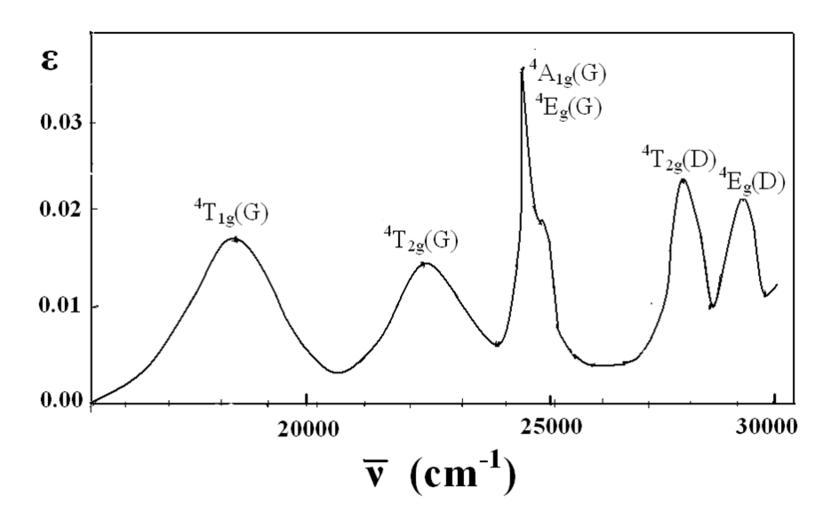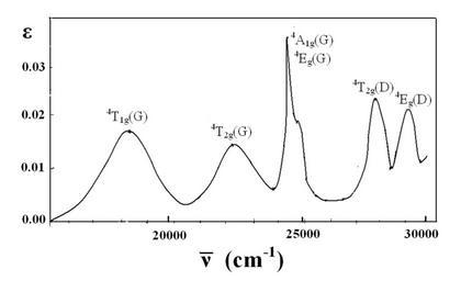 Keywords: 507 Mn Absorption.png en Absorption Spectrum of Mn H<sub>2</sub>O <sub>6</sub><sup>2+</sup> own ; spectrum was drawn by hand and is therefore semi-qualitative Chem507f091 2009-12 Ultraviolet-visible spectroscopy Manganese
