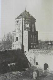 Keywords: Замак у 50 гг. 20 ст..JPG be і скі замак у 50 гады 20 стагоддзя Паднёва-заходняя вежа Уласны файл евядомы каля 1950г History of Mir Castle PD-old