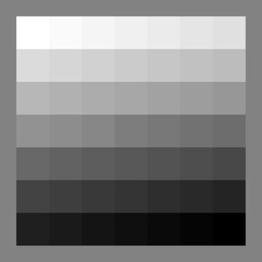 | Keywords: 50-shades-grey.svg 50 shades of grey more or less evenly-spaced in 24-bit RGB colorspace arranged in a square from pure white at top left to pure black at bottom right The shade closest to 50 gray surrounds the other 49 own made from scratch v 2015-02 AnonMoos <gallery>File Color icon gray v2 svg File Color_icon_gray svg</gallery> Gray squares |