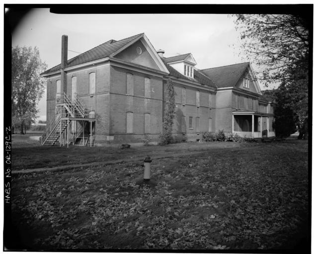 | Keywords: 5495 Chugath Street McBride Hall - view from southeast - Chemawa Indian School - Salem Oregon.jpg Chemawa Indian School Salem Marion County Oregon Built 1902; demolished 1978 Former National Register of Historic Places listing 1977 photograph from the HABS ”Historic American Buildings Survey images of Oregon ;LOC card text 5495 Chugach St N E Red brick on concrete foundations with wooden and stone trim rectangular with center and end projections 114' sixteen-bay front x 35' two-and-a-half stories hip and gable roofs with pedimented gable ends and gable dormers denticulated cornice three-bay hip-roof entrance porch with wooden railing double doors with fanlight segmental arched window heads with stone sills brick belt course at sill level of each floor; dormitory main stair with classical details Built 1902; alterations to interior n d ; demolished 1978 4 ext photos 1977 6 int photos 1977 Also see Chemawa Indian School OR-129 Card prepared 1979 CALL NUMBER HABS ORE 24-SAL 1C- NOTE Survey number HABS OR-129-C DIGID http //hdl loc gov/loc pnp/hhh or0042 CONTROL OR0042 Library of Congress Steve Viale 1977-10 OR-129-C Historic American Buildings Survey photographs of the Chemawa Indian School Chemawa Former buildings in Oregon Chemawa Built in Oregon in 1902 Chemawa Destroyed in the United States in 1978 Chemawa Brick buildings in Oregon Chemawa 1977 in Oregon Chemawa Black and white photographs of Oregon Chemawa |