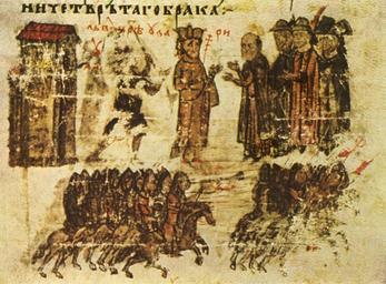 | Keywords: 59-manasses-chronicle.jpg Π ΠΈΠ½ΠΈΠ°ΡΡΡ Π° 59 ΠΎΡ Π Π°Π½Π°ΡΠΈΠ΅Π²Π°ΡΠ° Π»Π΅ΡΠΎΠΏΠΈΡ 14 Π²Π΅ΠΊ ΠΠΎΠΊΡΡΠ΅Π½ΠΈΠ΅ΡΠΎ Π½Π°Π΄ ΠΈΠΌΠΏΠ΅Ρ Π°ΡΠΎΡ ΠΡΠ² VI Π€ΠΈΠ»ΠΎΡΠΎΡ ΠΈ Π½Π°ΠΏΠ°Π΄Π΅Π½ΠΈΠ΅ Π½Π° ΠΌΠ°Π΄ΠΆΠ°Ρ ΠΈΡΠ΅ Miniature 59 from the Constantine Manasses Chronicle 14 century Assault upon emperor Leo VI the Wise and an attack from the madjars Π‘ΠΊΠ°Π½ΠΈΡ Π°Π½Π° ΠΎΡ ΠΊΠ½ΠΈΠ³Π°ΡΠ° Π ΠΈΠ½ΠΈΠ°ΡΡΡ ΠΈ Π½Π° Π Π°Π½Π°ΡΠΈΠ΅Π²Π°ΡΠ° Π»Π΅ΡΠΎΠΏΠΈΡ ΠΠ²Π°Π½ ΠΡΠΉΡΠ΅Π² ΠΠ·Π΄Π°ΡΠ΅Π»ΡΡΠ²ΠΎ ΠΡΠ»Π³Π°Ρ ΡΠΊΠΈ Ρ