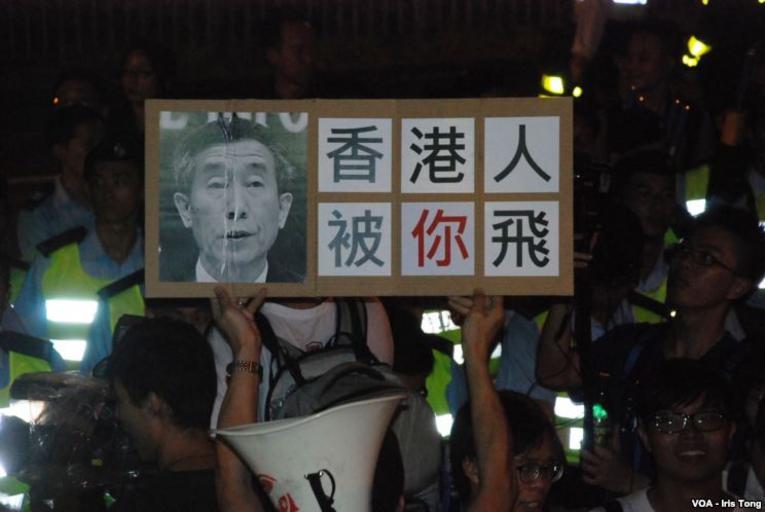 | Keywords: 狙擊李飛 (5).jpg zh-tw 示威 高舉諷刺 飛的標語 2014-09-02 08 49 58 http //www voacantonese com/media/photogallery/hong-kong-pan-democrats-protest-over-visiting-beijing-officials/2434695 html Voice of America Custom license marker 2014 09 02 PD-USGov-VOA Uploaded with UploadWizard 2014 Hong Kong electoral reform |