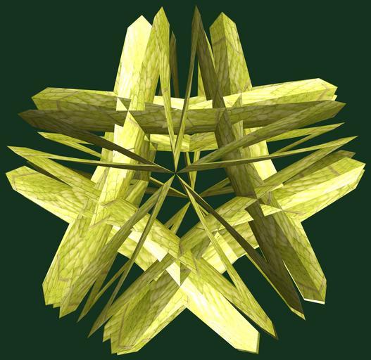 | Keywords: mathematica 3d cg parametricplot3d texture torus code program algorithm プログラム コード アルゴリズム 輪環 りんかん ドーナツ どーなつ 八芒星 はちぼうせい geometric sculpture geometricsculpture shape geometry sculpture mapping テクスチャ マッピング 模様 もよう abstract 抽象 ちゅうしょう アブストラクト design pattern デザイン パターン graphic グラフィック グラフィクス structure 意匠 構造 symmetry 対称性 たいしょうせい シンメトリー 対称 たいしょう organic pattern black background outdoor serene a = 4; (* center hole size *) b = 8; (* octa-torus *) c = -10; (* distance from the center of rotation *) d = 5; (* number of torus *) h = 5; (* height of a torus *) SetOptions[ParametricPlot3D, PlotRange -> Full, Mesh -> None, Boxed -> False, Axes -> False, PlotPoints -> 400, ImageSize -> 3000, Background -> RGBColor[{20, 50, 30}/255], PlotStyle -> Directive[Specularity[White, 30], Texture[Import["D:/tmp/71.jpg"]]], TextureCoordinateFunction -> ({#4, #5 Pi} &), Lighting -> "Neutral"]; f[v_] := TriangleWave[{-1, 1}, v/(2 Pi)]; g[v_] := TriangleWave[{-1, 1}, v/(2 Pi) + 1/4]; x = (a - g[t] - f[b s]) Cos[s + Pi/(2 b)]; y = (a - g[t] - f[b s]) Sin[s + Pi/(2 b)]; z = (a - f[t] - h f[b s]) + c; rm = Table[{x, y, z}.RotationMatrix[2 i Pi/d, {1, 1, 0}], {i, d}]; ParametricPlot3D[rm, {t, 0, 2 Pi}, {s, 0, Pi}] (*--- The Texture *) a = 4; (* center hole size *) b = 8; (* octa-torus *) c = -10; (* distance from the center of rotation *) d = 5; (* number of torus *) h = 5; (* height of a torus *) SetOptions[ParametricPlot3D, PlotRange -> Full, Mesh -> None, Boxed -> False, Axes -> False, PlotPoints -> 400, ImageSize -> 3000, Background -> RGBColor[{20, 50, 30}/255], PlotStyle -> Directive[Specularity[White, 30], Texture[Import["D:/tmp/71.jpg"]]], TextureCoordinateFunction -> ({#4, #5 Pi} &), Lighting -> "Neutral"]; f[v_] := TriangleWave[{-1, 1}, v/(2 Pi)]; g[v_] := TriangleWave[{-1, 1}, v/(2 Pi) + 1/4]; x = (a - g[t] - f[b s]) Cos[s + Pi/(2 b)]; y = (a - g[t] - f[b s]) Sin[s + Pi/(2 b)]; z = (a - f[t] - h f[b s]) + c; rm = Table[{x, y, z}.RotationMatrix[2 i Pi/d, {1, 1, 0}], {i, d}]; ParametricPlot3D[rm, {t, 0, 2 Pi}, {s, 0, Pi}] (*--- The Texture *) |