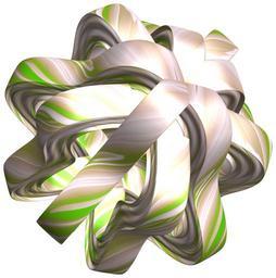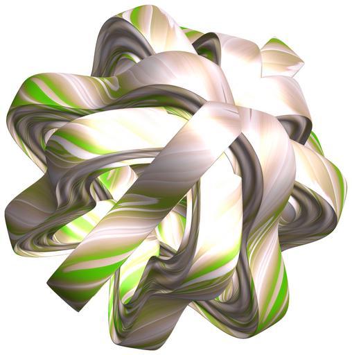 Keywords: mathematica 3d cg parametricplot3d texture torus 輪環 りんかん ドーナツ どーなつ 五芒星 ごぼうせい 五光星 ごこうせい 五稜星 ごりょうせい program プログラム code コード algorithm コード アルゴリズム pentagram geometric sculpture geometricsculpture shape geometry sculpture mapping テクスチャ マッピング 模様 もよう design pattern デザイン パターン graphic グラフィック グラフィクス structure 意匠 構造 symmetry 対称性 たいしょうせい シンメトリー 対称 たいしょう algorithm white background indoor SetOptions[ParametricPlot3D, PlotRange -> Full, Mesh -> None, Boxed -> False, Axes -> None, PlotPoints -> 300, ImageSize -> 3000, PlotStyle -> Directive[Specularity[White, 30], Texture[Import["D:/tmp/862.jpg"]]], TextureCoordinateFunction -> ({#4 + 2 #5, #5/Pi} &), Lighting -> "Neutral"]; a = 6; (* center hole size of a torus *) b = 5; (* penta-torus *) d = 5; (* number of torus *) x = (a - Cos[t] - Sin[b s]) Cos[s]; y = Sum[Sin[(2 k - 1) t]/(2 k - 1), {k, 4}]; z = (a - Cos[t] - Sin[b s]) Sin[s]; rot = Table[{x, y, z}.RotationMatrix[2 i Pi/d, {1, 0, 0}], {i, d}]; ParametricPlot3D[rot, {t, 0, 2 Pi}, {s, 0, 2 Pi}] (*--- The Texture is another color version of this: www.flickr.com/photos/tanaka_juuyoh/5412528282 The y is a 4-partial sum of the Fourier series for Square wave. yは矩形波のフーリエ展開の最初の4項 *) SetOptions[ParametricPlot3D, PlotRange -> Full, Mesh -> None, Boxed -> False, Axes -> None, PlotPoints -> 300, ImageSize -> 3000, PlotStyle -> Directive[Specularity[White, 30], Texture[Import["D:/tmp/862.jpg"]]], TextureCoordinateFunction -> ({#4 + 2 #5, #5/Pi} &), Lighting -> "Neutral"]; a = 6; (* center hole size of a torus *) b = 5; (* penta-torus *) d = 5; (* number of torus *) x = (a - Cos[t] - Sin[b s]) Cos[s]; y = Sum[Sin[(2 k - 1) t]/(2 k - 1), {k, 4}]; z = (a - Cos[t] - Sin[b s]) Sin[s]; rot = Table[{x, y, z}.RotationMatrix[2 i Pi/d, {1, 0, 0}], {i, d}]; ParametricPlot3D[rot, {t, 0, 2 Pi}, {s, 0, 2 Pi}] (*--- The Texture is another color version of this: www.flickr.com/photos/tanaka_juuyoh/5412528282 The y is a 4-partial sum of the Fourier series for Square wave. yは矩形波のフーリエ展開の最初の4項 *) |