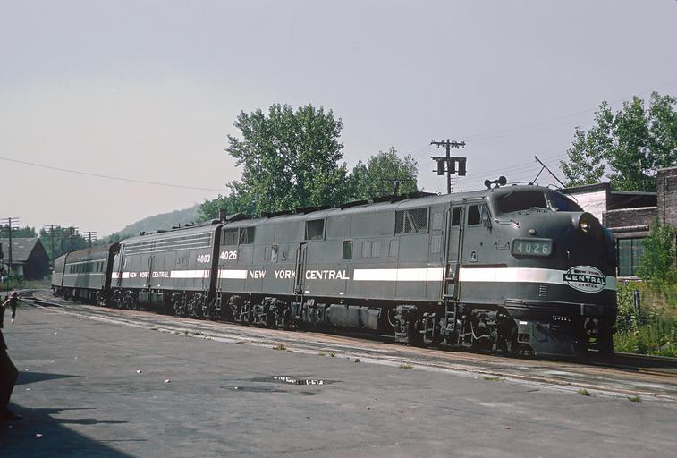 | Keywords: new your central newyourcentral outdoor vehicle train railroad NYC 4026 (E8A) and 4003 (the roster says E7A, but it sure looks like an E8A) with Empire Service Train 71 at Hudson, NY on September 2, 1968. [Just received this comment from James Ridgway Jr.: "4003 was built as an E7. Wrecked, and sent to EMD. Rebuilt as an E8, same number."] NYC 4026 (E8A) and 4003 (the roster says E7A, but it sure looks like an E8A) with Empire Service Train 71 at Hudson, NY on September 2, 1968. [Just received this comment from James Ridgway Jr.: "4003 was built as an E7. Wrecked, and sent to EMD. Rebuilt as an E8, same number."] NYC 4026 (E8A) and 4003 (the roster says E7A, but it sure looks like an E8A) with Empire Service Train 71 at Hudson, NY on September 2, 1968. [Just received this comment from James Ridgway Jr.: "4003 was built as an E7. Wrecked, and sent to EMD. Rebuilt as an E8, same number."]