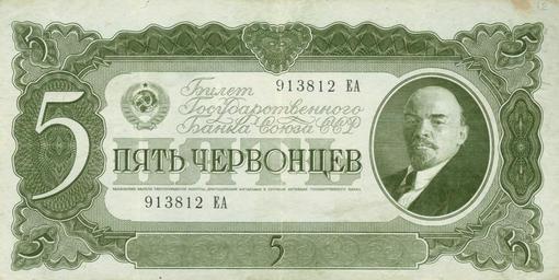 | Keywords: 5roubles1937b.JPG  Soviet money bill 5 че вонцев 50  ублей 1937 Front See also other side Image 5roubles1937a jpg http //tygra ru/v 2/cdrom/dengi shtml CDROM Деньги by Tygra RU 1937 Ivan Dubasov / И И Дубасов PD-RU-exempt banknotes PD-old Banknotes of the Soviet Union 1937 Vladimir Lenin on banknotes Banknotes with a face value of 5 Green banknotes |