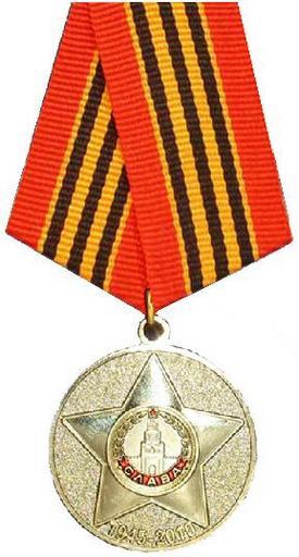 Keywords: 65 years victory ww2.jpg en Russian Federation State Jubilee Medal for the 65th Anniversary of Victory in the Great Patriotic War 1941 - 1945 Instituted by presidential decree 238 of 4 March 2009 Awarded to soldiers and civilian employees of the Armed Forces of the USSR for participation in hostilities in the Great Patriotic War 1941 - 1945 guerrillas and members of underground organizations operating in occupied territories of the USSR persons who were awarded the medal For Victory over Germany or For Victory over Japan persons awarded for their selfless work the medal For Valiant Labor in the Great Patriotic War or For Labor Merit or any of the Defense medals of the cities or regions of the USSR; to persons who worked in the period from 22 June 1941 to May 9 1945 for no less than six months excluding the period of work in the temporarily occupied territories; former underage prisoners of concentration camps ghettos and other places of detention established by the Nazis and their allies; foreign nationals from outside the Commonwealth of Independent States who fought in the national military forces in the USSR as part of guerrilla units underground groups and other anti-fascist groups who have made significant contribution to victory in World War II and who were awarded state awards of the USSR or Russia own Fdutil date Medal 65th anniversary of victory in The Great Patriotic War |