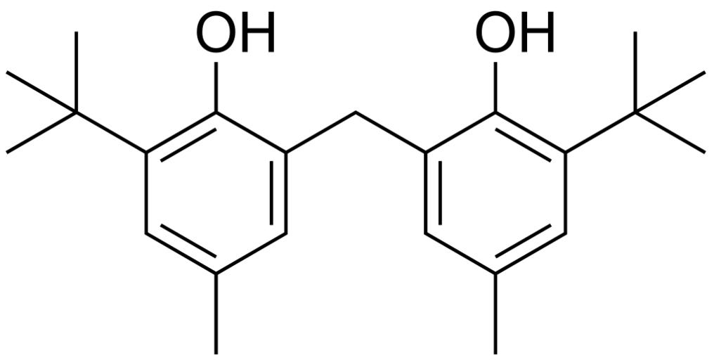 | Keywords: 6,6'-methylenebis(2-(tert-butyl)-4-methylphenol) 100.svg validSVG Structure of 6 6'-methylenebis 2- tert-butyl -4-methylphenol Own 2014-04-02 Emeldir <span class signature-talk >talk</span> Chemical structure verified https //upload wikimedia org/wikipedia/commons/6/67/6 2C6 27-methylenebis 282- 28tert-butyl 29-4-methylphenol 29_100 svg 1S/C23H32O2/c1-14-9-16 20 24 18 11-14 22 3 4 5 13-17-10-15 2 12-19 21 17 25 23 6 7 8/h9-12 24-25H 13H2 1-8H3 KGRVJHAUYBGFFP-UHFFFAOYSA-N 119-47-1 Synonyms <small>2 2'-Bis-6-terc butyl-p-kresylmethan CZECH 2 2'-Methylenebis4-methyl-6-tert-butylphenol 2 2'-Methylenebis6- 1 1-dimethylethyl -p-cresol 2 2'-Methylenebis6-tert-butyl-p-cresol 2 2'-Methylene-bis 4-methyl-6-tert-butylphenol 2 2'-Methylene-bis 4-methyl-6-tertiarybutylphenol 2 2'-Methylene-bis 6-tert-butyl-para-cresol 2 2'-Methylenebis 4-methyl-6-tert-butylphenol 2 2'-Methylenebis 6-t-butyl-4-methylphenol 2 2'-Methylenebis6- 1 1-dimethylethyl -4-methylphenol 2246 3 3'-Di-tert-butyl-2 2'-dihydroxy-5 5'-dimethyldiphenylmethane 6 6'-di-tert-butyl-2 2'-methylenedi-p-cresol 6 6'-Methylenebis 2-tert-butyl-4-methylphenol A-22-46 Advastab 405 Alterungsschutzmittel BKF Anti Ox Anti Oxidant 2246 Antioxidant 1 Antioxidant 2246 Antioxidant BKF Antioxidant NG-2246 AO 1 antioxidant AO 1 VAN AO 2246 Bis 2-hydroxy-3-tert-butyl-5-methylphenyl methane Bis 3-tert-butyl-2-hydroxy-5-methylphenyl methane Bisalkofen BP BKF Calco 2246 CAO 14 CAO 5 Catolin 14 Chemanox 21 Di 2-hydroxy-5-methyl-3-tert-butylphenyl methane Lederle 2246 Methane 2 2'-bis 6-tert-butyl-p-cresyl - NG 2246 Nocrac NS 6 Nocrack NS 6 p-Cresol 2 2'-methylenebis6-tert-butyl- 8CI Phenol 2 2'-methylenebis6- 1 1-dimethylethyl -4-methyl- 9CI Plastanox 2246 Plastanox 2246 Antioxidant RALOX R 46 S 67 WLN 1X1 1 R BQ C3R BQ CX1 1 1</small> PD-chem Aging inhibitors Alkylphenols Bisphenols |