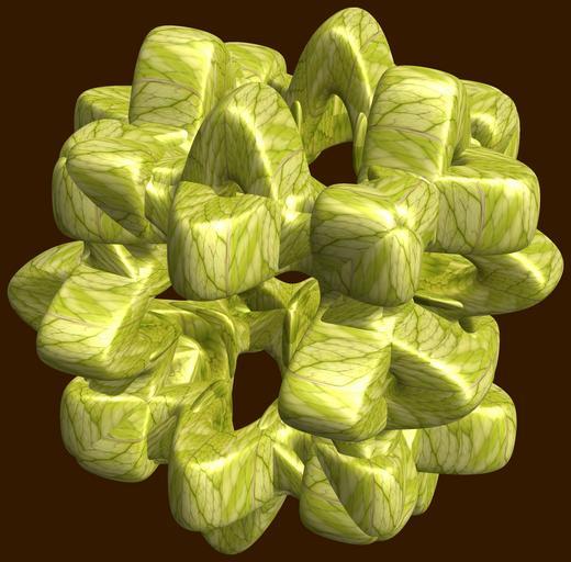 | Keywords: mathematica 3d cg parametricplot3d texture torus 輪環 りんかん ドーナツ どーなつ 八芒星 はちぼうせい 八光星 はちこうせい 八稜星 はちりょうせい プログラム コード code program algorithm コード アルゴリズム geometric sculpture geometricsculpture shape geometry sculpture abstract 抽象 ちゅうしょう アブストラクト design pattern デザイン パターン graphic グラフィック グラフィクス structure 意匠 構造 symmetry 対称性 たいしょうせい シンメトリー 対称 たいしょう algorithm indoor foliage plant a = 4; (* center hole size of a torus *) b = 8; (* octa-torus *) c = 3; (* distance from the center of rotation *) d = 6; (* number of torus *) SetOptions[ParametricPlot3D, PlotRange -> Full, Mesh -> None, Boxed -> False, Axes -> None, PlotPoints -> 400, ImageSize -> 3000, Background -> Darker[Orange, 0.8], PlotStyle -> Directive[Specularity[White, 30], Texture[Import["D:/tmp/71.jpg"]]], TextureCoordinateFunction -> ({#4, #5 b Pi} &), Lighting -> "Neutral"]; x = (a - Cos[t] - Sin[b s]) Cos[s + Pi/(2 b)]; y = (a - Cos[t] - Sin[b s]) Sin[s + Pi/(2 b)]; z = Sin[2 Sin[Sin[Sin[t]]]] + c; vc = {{0, 0, 1}, {0, 0, -1}, {0, 1, 0}, {0, -1, 0}, {1, 0, 0}, {-1, 0, 0}}; rot = Table[{x, y, z}.RotationMatrix[{{0, 0, 1}, vc[[i]]}], {i, d}]; ParametricPlot3D[rot, {t, 0, 2 Pi}, {s, 0, 2 Pi}] (*--- The Texture *) a = 4; (* center hole size of a torus *) b = 8; (* octa-torus *) c = 3; (* distance from the center of rotation *) d = 6; (* number of torus *) SetOptions[ParametricPlot3D, PlotRange -> Full, Mesh -> None, Boxed -> False, Axes -> None, PlotPoints -> 400, ImageSize -> 3000, Background -> Darker[Orange, 0.8], PlotStyle -> Directive[Specularity[White, 30], Texture[Import["D:/tmp/71.jpg"]]], TextureCoordinateFunction -> ({#4, #5 b Pi} &), Lighting -> "Neutral"]; x = (a - Cos[t] - Sin[b s]) Cos[s + Pi/(2 b)]; y = (a - Cos[t] - Sin[b s]) Sin[s + Pi/(2 b)]; z = Sin[2 Sin[Sin[Sin[t]]]] + c; vc = {{0, 0, 1}, {0, 0, -1}, {0, 1, 0}, {0, -1, 0}, {1, 0, 0}, {-1, 0, 0}}; rot = Table[{x, y, z}.RotationMatrix[{{0, 0, 1}, vc[[i]]}], {i, d}]; ParametricPlot3D[rot, {t, 0, 2 Pi}, {s, 0, 2 Pi}] (*--- The Texture *) |