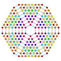 Keywords: 6-cube t12345 B3.svg en 6-cube family graph in B3 en Coxeter plane own 10/11/10 self Set of colored Coxeter plane graphs; 216 vertices