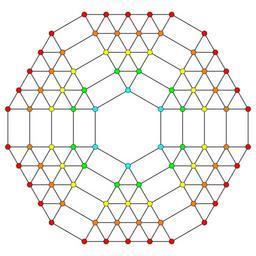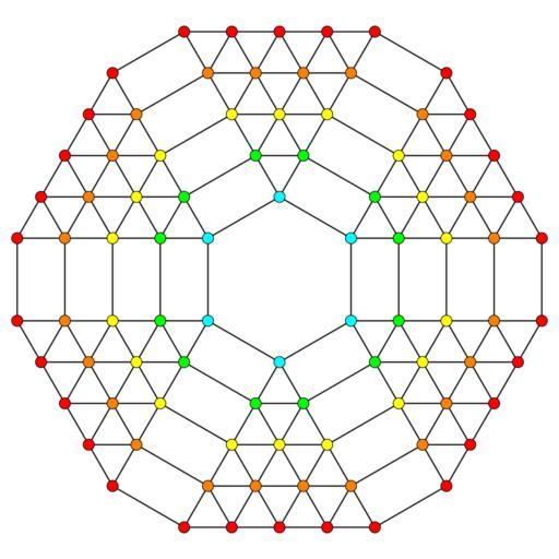 Keywords: 6-simplex t012345 A2.svg en en 6-simplex family graph in A2 Coxeter plane own Tomruen Set of colored Coxeter plane graphs; 90 vertices
