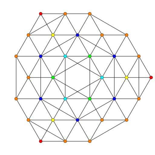 Keywords: 6-simplex t024 A2.svg en en 6-simplex family graph in A2 en Coxeter plane own Tomruen Set of colored Coxeter plane graphs red orange yellow green vertices