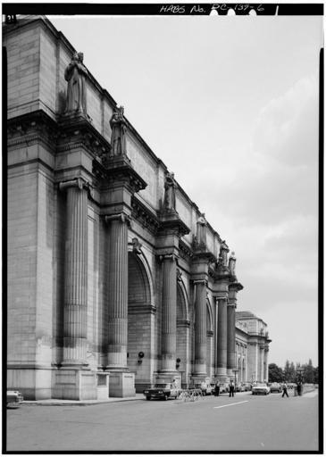 | Keywords: 6. SOUTH FRONT, MAIN ENTRANCE PAVILION, EXTREMELY OBLIQUE VIEW 1968 - Union Station030015pv.jpg  en Union Station 50 Massachusetts Avenue Northeast Washington District of Columbia DC 6 SOUTH FRONT MAIN ENTRANCE PAVILION EXTREMELY OBLIQUE VIEW 1968 5 x 7 in accession number Reproduction Number HABS DC WASH 536--6 Call Number HABS DC WASH 536--6 institution Library of Congress Prints and Photographs Division Washington D C 20540 USA http //hdl loc gov/loc pnp/pp print LOC-image hhh dc0254/photos 030015p Creator Jack Boucher Rights Advisory No known restrictions on images made by the U S Government; images copied from other sources may be restricted http //www loc gov/rr/print/res/114_habs html 38 895 -77 03667 DC WASH 536--6 Union Station Washington D C Uploaded with UploadWizard |