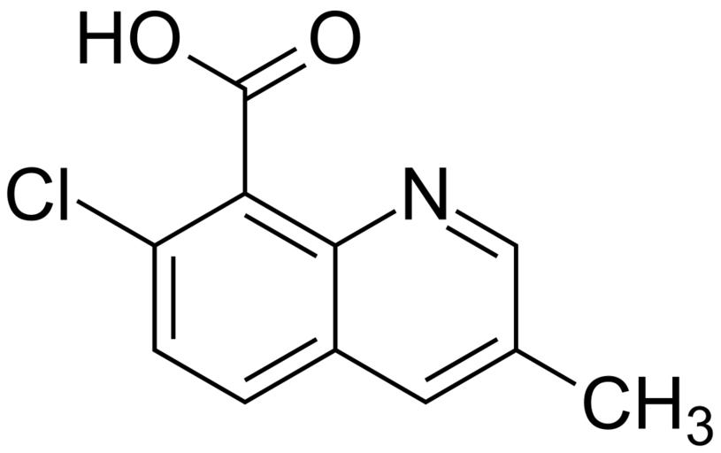 Keywords: 7-chloro-3-methylquinoline-8-carboxylic acid 200.svg validSVG Structure of 7-chloro-3-methylquinoline-8-carboxylic acid Own 2014-05-21 Emeldir <span class signature-talk ></span> Chemical structure verified https //upload wikimedia org/wikipedia/commons/7/76/7-chloro-3-methylquinoline-8-carboxylic_acid_200 svg 1S/C11H8ClNO2/c1-6-4-7-2-3-8 12 9 11 14 15 10 7 13-5-6/h2-5H 1H3 H 14 15 ALZOLUNSQWINIR-UHFFFAOYSA-N 90717-03-6 Synonyms <small>7-Chloro-3-methyl-8-quinolinecarboxylic acid BAS 518 H Fiesta Quinmerac quinmerac</small> PD-chem Quinaldic acids Haloquinolines Carboxylic acids Herbicides |