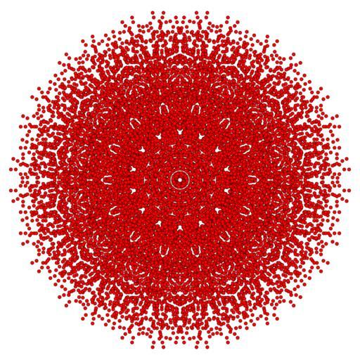 Keywords: 7-cube t256.svg en 7-cube family graph in B7 en Coxeter plane Vertices only no edges due to file sizes too large own 10/21/10 self 7-polytopes