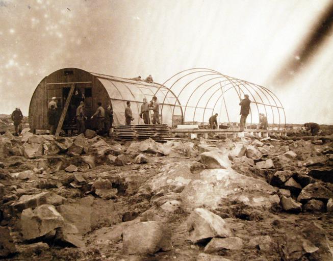 | Keywords: monochrome outdoor 80-CF-924-5_Box 176: Construction of Camp SNAFU, Reykjavik, Iceland, circa 1941. The first and second Nissen Huts of the camp. Note the paper insulation being applied on hut to the left. U.S. Navy photograph, now in the collections of the National Archives (2015/11/24). 80-CF-924-5_Box 176: Construction of Camp SNAFU, Reykjavik, Iceland, circa 1941. The first and second Nissen Huts of the camp. Note the paper insulation being applied on hut to the left. U.S. Navy photograph, now in the collections of the National Archives (2015/11/24). |