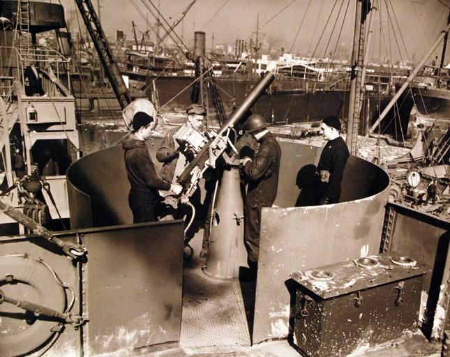 Keywords: 80-G-2361: Atlantic Convoys. New York Navy Yard workers fitting armament on merchant ships. Shown: Setting up machine gun installations. Photograph by Third Naval District, March 1942. U.S. Navy Photograph, now in the collections of the National Archives. (2016/02/02). 80-G-2361: Atlantic Convoys. New York Navy Yard workers fitting armament on merchant ships. Shown: Setting up machine gun installations. Photograph by Third Naval District, March 1942. U.S. Navy Photograph, now in the collections of the National Archives. (2016/02/02). |