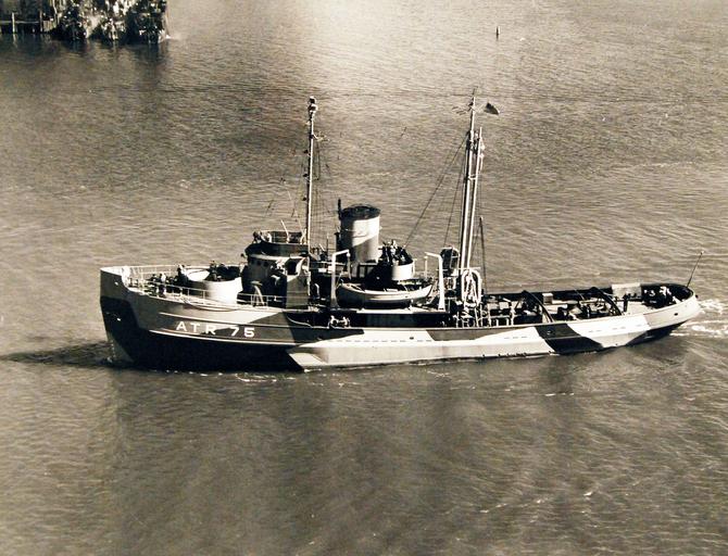 | Keywords: vehicle boat outdoor 80-G-285280: U.S. Navy Rescue Tug, USS ATR 75, broadside. Photographed from an aircraft from Naval Air Station, Norfolk, Virginia. Photograph received October 16, 1944. U.S. Navy photograph, now in the collections of the National Archives. (2016/03/15). 80-G-285280: U.S. Navy Rescue Tug, USS ATR 75, broadside. Photographed from an aircraft from Naval Air Station, Norfolk, Virginia. Photograph received October 16, 1944. U.S. Navy photograph, now in the collections of the National Archives. (2016/03/15). |