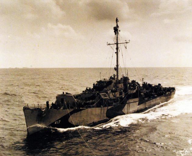 | Keywords: outdoor sea 80-G-298067: USS Oliver Mitchell (DE 417) bringing crew of a crashed TBM to USS Anzio (CVE 57). Shown: Rigging breeches buoy. U.S. Navy Photograph, now in the collections of the National Archives. (2016/02/02). 80-G-298067: USS Oliver Mitchell (DE 417) bringing crew of a crashed TBM to USS Anzio (CVE 57). Shown: Rigging breeches buoy. U.S. Navy Photograph, now in the collections of the National Archives. (2016/02/02). | ||||