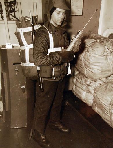 | Keywords: people indoor 80-G-426808: Ensign Lewis H. Petersen, USNR, in charge of group working of the survival kit, demonstrates how it will look on the pilot when used. The container by may be abandoned after equipment is taken from it. Photograph released January 17, 1951. U.S. Navy Photograph, now in the collections of the National Archives. (2016/03/22). 80-G-426808: Ensign Lewis H. Petersen, USNR, in charge of group working of the survival kit, demonstrates how it will look on the pilot when used. The container by may be abandoned after equipment is taken from it. Photograph released January 17, 1951. U.S. Navy Photograph, now in the collections of the National Archives. (2016/03/22). |
