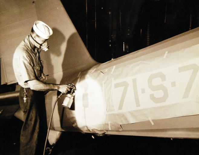 | Keywords: monochrome 80-G-463965: USS Wasp (CV 7) PTR1/C M. H. Ellinger stenciling aircraft, December 4, 1941. Official U.S. Navy photograph, now in the collections of the National Archives. (2016/09/20). 80-G-463965: USS Wasp (CV 7) PTR1/C M. H. Ellinger stenciling aircraft, December 4, 1941. Official U.S. Navy photograph, now in the collections of the National Archives. (2016/09/20). |