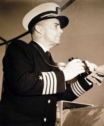 | Keywords: 80-G-6679: USS Indiana (BB 58). Captain A.S. Merrill, USN, Commanding Officer of USS Indiana poses on the bridge of his warship following ceremonies held at Newport News, Virginia, April 30. He stated, “I’ll probably spend the rest of the war up here” to the photographers. Photograph released April 30, 1942. Official U.S. Navy photograph, now in the collections of the National Archives. (2016/10/11). 80-G-6679: USS Indiana (BB 58). Captain A.S. Merrill, USN, Commanding Officer of USS Indiana poses on the bridge of his warship following ceremonies held at Newport News, Virginia, April 30. He stated, “I’ll probably spend the rest of the war up here” to the photographers. Photograph released April 30, 1942. Official U.S. Navy photograph, now in the collections of the National Archives. (2016/10/11). |