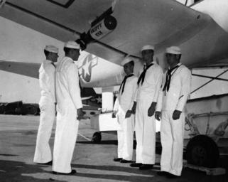 Keywords: blackandwhite monochrome black and white 80-G-82607: Naval Air Station, Banana River, Florida, September 7, 1943. Funeral services for the mascot of Hedron 12. “Skippy” encased in empty bomb shell is placed on rack under wing of OS2U which will carry him out to sea for burial. Official U.S. Navy photograph, now in the collections of the National Archives. (2016/10/04). 80-G-82607: Naval Air Station, Banana River, Florida, September 7, 1943. Funeral services for the mascot of Hedron 12. “Skippy” encased in empty bomb shell is placed on rack under wing of OS2U which will carry him out to sea for burial. Official U.S. Navy photograph, now in the collections of the National Archives. (2016/10/04). |