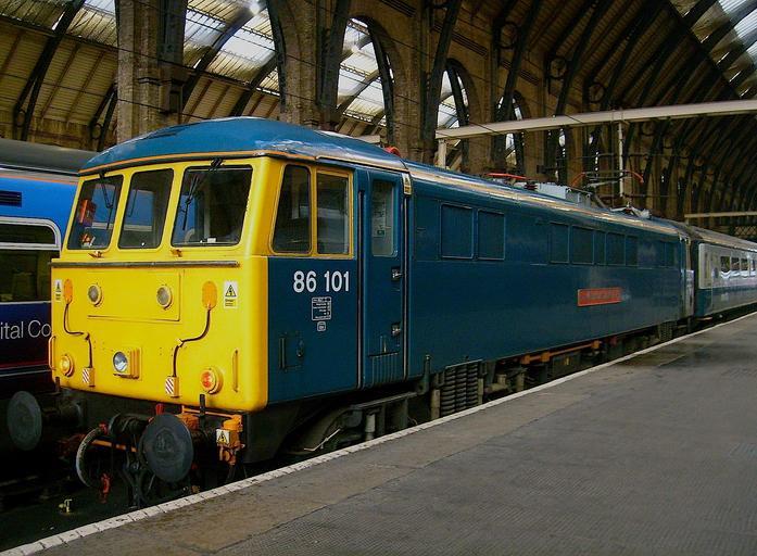 Keywords: 86101 A A Kings Cross.JPG The preserved AC Loco Group Class 86/1 No 86101 'Sir William Stanier FRS' at London Kings Cross with a Hull Trains service bound for Doncaster Own Peter Skuce British Rail Class 86/1 86101 Electric locomotives at London King's Cross railway station |