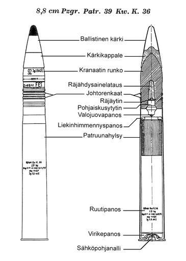 | Keywords: 8,8 cm Panzergranatpatrone 39 Kw.K. 36.JPG Drawing of a German Pzgr Patr 39 Kw K 36 APCBC round H Dv 481-60 Merkblatt für die Munition der 8 8 cm KwK 36 10-01-2007 lauri vuorinen diagram World War II artillery ammunition 88 8 8 cm KwK 36 Ammunition 88 mm ammunition Cutaway diagrams Ammunition |
