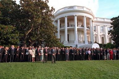| Keywords: washington d.c. dc u.s. national archives usnationalarchives 9/11 911 president george w. bush presidentgeorgewbush nara:arcid=5997323 moment of silence momentofsilence south lawn southlawn george w. bush georgewbush vice president vicepresident dick cheney dickcheney george w. bush presidential library georgewbushpresidentiallibrary outdoor Original Caption: President George W. Bush and Vice President Dick Cheney are joined by White House staff members as they observe a moment of silence on the White House South Lawn. U.S. National Archives’ Local Identifier: P7492-06 Created By: President (2001-2009 : Bush). Office of Management and Administration. Office of White House Management. Photography Office. (01/20/2001 - 01/20/2009) From: Photographs Related to the George W. Bush Administration, compiled 01/20/2001 - 01/20/2009 Production Dates: 09/18/2001 Persistent URL: arcweb.archives.gov/arc/action/ExternalIdSearch?id=5997323 Repository: George W. Bush Library (Lewisville, TX) Access Restrictions: Unrestricted Use Restrictions: Unrestricted Original Caption: President George W. Bush and Vice President Dick Cheney are joined by White House staff members as they observe a moment of silence on the White House South Lawn. U.S. National Archives’ Local Identifier: P7492-06 Created By: President (2001-2009 : Bush). Office of Management and Administration. Office of White House Management. Photography Office. (01/20/2001 - 01/20/2009) From: Photographs Related to the George W. Bush Administration, compiled 01/20/2001 - 01/20/2009 Production Dates: 09/18/2001 Persistent URL: arcweb.archives.gov/arc/action/ExternalIdSearch?id=5997323 Repository: George W. Bush Library (Lewisville, TX) Access Restrictions: Unrestricted Use Restrictions: Unrestricted |
