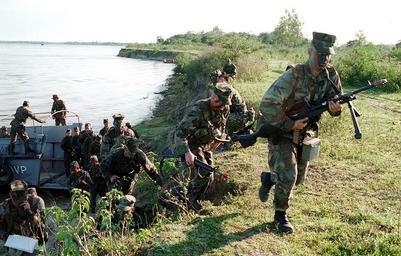 MAKE A MEME View Large Image 961006-N-1030S-002 UNITAS Training.jpg en 961006-N-1030S-002 Lance Corporal Matthew Gladden right leads the Marines from the II Marine Expeditionary Force MEF MAR for UNITAS ashore during amphibious landing excercises in phase 6 of UNITAS ...