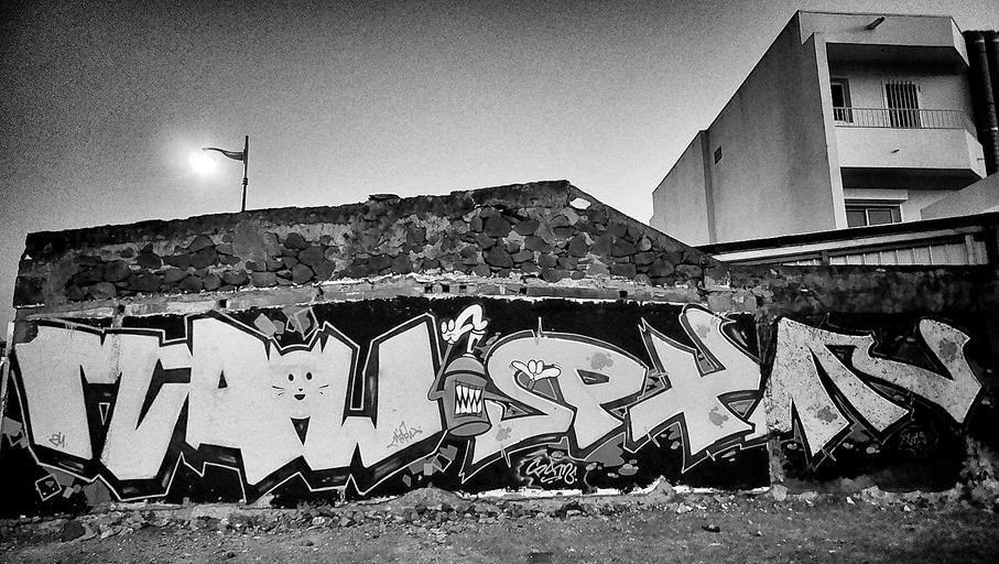 Keywords: graffiti st denis stdenis la reunion lareunion ile island b&w bw 2013 street sony nex-3 sonynex3 sel1855 snapseed 974 blackandwhite monochrome outdoor black and white