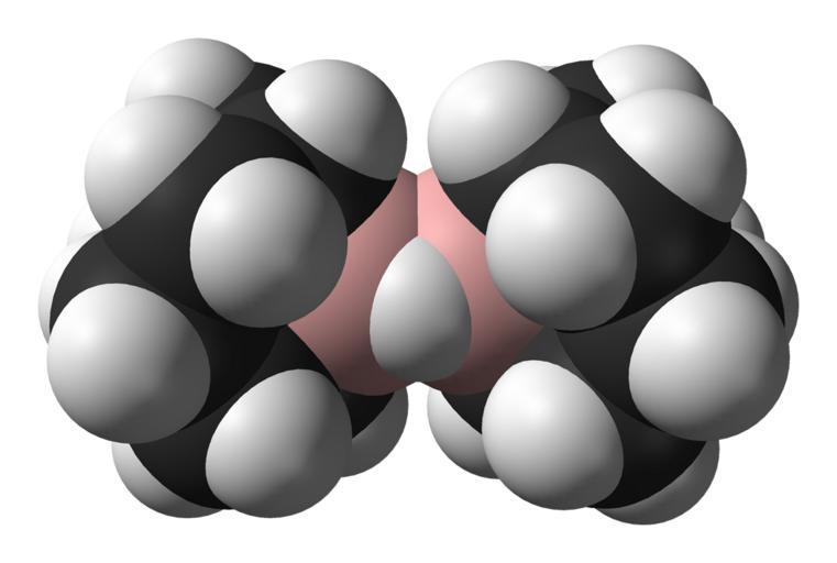 | Keywords: 9-BBN-dimer-xtal-3D-vdW.png Space-filling model of the 9-borabicyclo3 3 1nonane dimer as found in the solid state Single-crystal X-ray diffraction data from cite journal The crystal and molecular structure of bis-9-borabicyclo3 3 1nonane a study of the boron-carbon bond D J Brauer and C Krüger Acta Cryst 1973 August B29 8 1684-1690 10 1107/S0567740873005261 Own 2008-05-04 Ben Mills Benjah-bmm27 Images by Ben Mills Space-filling models 9-BBN Dimers | ||||