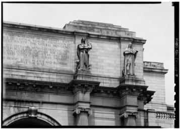 | Keywords: 9. DETAIL, EAST END OF MAIN ENTRANCE PAVILION, SHOWING STATUARY AND INSCRIPTION - Union Station030018pv.jpg  en Union Station 50 Massachusetts Avenue Northeast Washington District of Columbia DC 9 DETAIL EAST END OF MAIN ENTRANCE PAVILION SHOWING STATUARY AND INSCRIPTION 5 x 7 in accession number Reproduction Number HABS DC WASH 536--9 Call Number HABS DC WASH 536--9 institution Library of Congress Prints and Photographs Division Washington D C 20540 USA http //hdl loc gov/loc pnp/pp print LOC-image hhh dc0254/photos 030018p Creator Jack Boucher Rights Advisory No known restrictions on images made by the U S Government; images copied from other sources may be restricted http //www loc gov/rr/print/res/114_habs html 38 895 -77 03667 DC WASH 536--9 Union Station Washington D C Uploaded with UploadWizard |