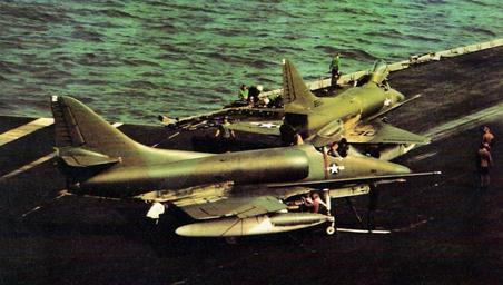 | Keywords: A-4C VA-113 camouflaged 1966.jpg en Two U S Navy Douglas A-4C Skyhawk aircraft of Attack Squadron VA-113 Stingers on the catapult of the aircraft carrier USS Kitty Hawk CVA-63 during that carrier's deployment to Vietnam from 19 October 1965 to 13 June 1966 The U S Navy experimented with aircraft camouflage and painted half of the aircraft of Attack Carrier Air Wing 11 CVW-11 with dark green colours to blend in with the Vietnamese jungle The results proved inconclusive for the U S Navy whereas the U S Air Force concluded that the camouflage was effective U S Navy planes would not be camouflaged until the 1980s Note that oil from the engine oil breather has streaked the camouflage paint http //collections naval aviation museum/emuwebdoncoms/pages/doncoms/AdvQuery php U S Navy National Museum of Naval Aviation photo No http //collections naval aviation museum/emuwebdoncoms/pages/doncoms/Display php irn 16004245 QueryPage 2Femuwebdoncoms 2Fpages 2Fdoncoms 2FAdvQuery php 1996 253 4976 ca 1966 photographer PHC R E Rutledge USN PD-USGov-Military-Navy A-4C Skyhawk Flight deck of USS Kitty Hawk CV-63 Strike Fighter Squadron 113 United States Navy Aircraft camouflage |