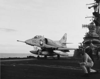 Keywords: A-4C of VA-172 on catapult of USS Franklin D. Roosevelt (CVA-42) in August 1966.jpg A U S Navy Douglas A-4C Skyhawk BuNo 145143 from Attack Squadron 172 VA-172 Blue Bolts prepares to leave the flight deck of the aircraft carrier USS Franklin D Roosevelt CVA-42 10 August 1966 VA-172 was assigned to Attack Carrier Air Wing 1 CVW-1 aboard the Franklin D Roosevelt for a deployment to Vietnam from 21 June 1966 to 21 February 1967 <br> This aircraft was lost on 2 December 1966 when it was shot down by a North Vietnamese SA-2 missile during a night reconnaissance mission over the Red River delta south of Hanoi Vietnam The pilot Commander Bruce A Nystrom VA-172's commanding officer was killed Official U S Navy photo http //www history navy mil/our-collections/photography/numerical-list-of-images/nhhc-series/nh-series/USN-1118000/USN-1118347 html USN 1118347 from the U S Navy http //www history navy mil Naval History and Heritage Command 1966-08-10 U S Navy PD-USGov-Military-Navy A-4C Skyhawk Attack Squadron 172 United States Navy Aboard USS Franklin D Roosevelt CV-42 Vietnam War in 1966 United States Navy air group commander aircraft |