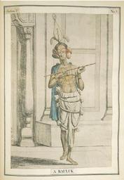 Keywords: A Bauluk..JPG en Colored etching of barefoot Bengali dancing boy with painted face dressed as Krishna Inscription below figure reads a Bauluk Boy ™s costume includes bird headdress blue cape necklace and exotic ear decorations He holds a wand Representative image of a dancer at feast of Jhulan Yatra From Solvyns ™s Collection of two hundred and fifty coloured etchings sec 3 pl 5 Courtesy of the National Library of Medicine Images from the History of Medicine IHM http //ihm nlm nih gov/images/A109323 Also showcased in the book Hidden Treasure New York NY Blast Books 2012 p 72 HMD call number WZ 260 S692c 1799 Solvyns Balt Balthazar 1760-1824 Custom license marker 2013 08 23 PD-USGov Uploaded with UploadWizard Dance in drawings of India Frans Balthazar Solvyns |