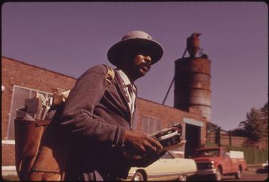 | Keywords: A BLACK MAN DELIVERS MAIL TO THE BLOCK OF EAST 43RD STREET ON CHICAGO'S SOUTH SIDE. HE IS ONE OF THE NEARLY 1.2... - NARA - 556155.jpg  Scope and content General notes 556155 Local identifier 412-DA-13703 Environmental Protection Agency 12/02/1970 - NARA-Author White John H 1945- Photographer 4002141 <br /> Chicago Cook county Illinois United States North and Central America inhabited place 4201352 41 85 -87 65 <br /> Still Picture Records Section Special Media Archives Services Division NWCS-S National Archives at College Park 8601 Adelphi Road College Park MD 20740-6001 10/1973 Record group Record Group 412 Records of the Environmental Protection Agency 1944 - 2006 Record group ARC 708 DOCUMERICA The Environmental Protection Agency's Program to Photographically Document Subjects of Environmental Concern compiled 1972 - 1977 Series ARC 542493 File unit File unit ARC Variant control numbers Agency-Assigned Identifier 229/23/013703<br /> NAIL Control Number NWDNS-412-DA-13703 no Other versions <gallery> File A_BLACK_MAN_DELIVERS_MAIL_TO_THE_BLOCK_OF_EAST_43RD_STREET_ON_CHICAGO'S_SOUTH_SIDE _HE_IS_ONE_OF_THE_NEARLY_1 2 _-_NARA_-_556155 tif tif File A_BLACK_MAN_DELIVERS_MAIL_TO_THE_BLOCK_OF_EAST_43RD_STREET_ON_CHICAGO'S_SOUTH_SIDE _HE_IS_ONE_OF_THE_NEARLY_1 2 _-_NARA_-_556155 jpg jpg </gallery> NARA-cooperation PD-USGov John H White People of the United States Postal Service South Side of Chicago African American men |