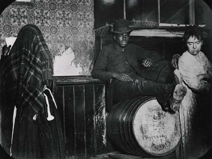 MAKE A MEME View Large Image Jacob En "svart" mann og to kvinner i en saloon, Thompson Street, New York. Fra publikasjon: Photographer and Citizen, Alland 1974 Positivkopi gelatin, barytt 20,0x25,0 og 12,0x16,1 cm (2 ex) NMFF.002177 Riis, Jacob En ...