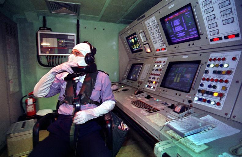 | Keywords: A bordo da Vasco da Gama 2.JPEG A Portuguese Sailor listens as his exceutive officer Not shown directs a fire party from the Portuguese Frigate NRP VASCO DE GAMA'S F 330 machine control room during a capability enhancement training CET exercise The VASCO DE GAMA is operating with other NATO Navy ships off the coast of Portugal during exercise Strong Resolve '98 Crisis South on March 12th 1998 http //www defenseimagery mil/assetDetails action guid 7c4ff6b3b74fb4d7a1840ad88321555712943672 1998-03-12 PH1 Todd P Cichonowicz PD-USGov-Military-Navy Anti-flash gear NRP Vasco da Gama F330 Strong Resolve 1998 |