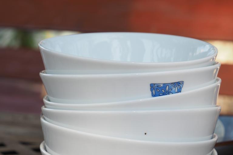 Keywords: a bowl cup porcelain bowl white picnic camping outdoor overlap put the food container