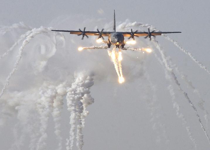 Keywords: British C-130J Hercules aircraft launches defensive countermeasures coalition aircraft