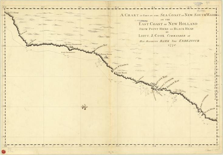 | Keywords: A Chart of Part of the Sea Coast of New South Wales on the East Coast of New Holland from Point Hicks to Black Head WDL6772.png Artwork ru Кук Джеймс 1728-1779 fr Cook James 1728-1779 en Cook James 1728-1779 zh 库克 Cook 詹姆斯 James 1728-1779 pt Cook James 1728-1779 ar كوك جيمس 1728-1779 es Cook James 1728-1779 ru Ка та части мо ского побе ежья ового Южного Уэльса на Восточном побе ежье овой Голландии от Пойнт Хикс до Блэк Хед fr Une carte d'une partie du littoral de la Nouvelle-Galles-du-Sud sur la côte est de la Nouvelle-Hollande depuis Point Hicks jusque Black Head en A Chart of Part of the Sea Coast of New South Wales on the East Coast of New Holland from Point Hicks to Black Head zh 新荷兰 海岸从希克斯点到黑头的新南威尔士部分海岸 图 pt Uma Carta Náutica de Parte da Costa Marítima de Nova Gales do Sul na Costa Leste da Nova Holanda de Point Hicks a Black Head ar خريطة جزء من الساحل البحري لولاية نيو ساوث ويلز على الساحل الشرقي لهولندا الجديدة من هايكس بوينت إلى بلاك هيد ru Эта ка та является одной из четы ех укописных ка т составленных в ходе пе вого длительного исследовательского путешествия капитана Джеймса Кука кото ый в ап еле 1770 г впе вые нанес на ка ту четкое оче тание восточного побе ежья Авст алии Пе ед экспедицией о ганизованной на с едства Ко олевского научного общества и Б итанского ко олевского флота было поставлено несколько задач Кук должен был вести наблюдение и описывать п охождение Вене ы наносить на ка ту бе еговые линии посещаемых экспедицией мест в южной части Тихого океана и вести под обные записи о астительном и животном ми е этих мест а также о населяющих эти места людях О ганизато ы экспедиции также надеялись что Кук обна ужит мате ик известный в то в емя под названием <em>terra incognita australis</em> и Б итания сможет заявить на него свои п ава Ко абль Кука не подплывал близко к бе егу за исключением нескольких мест таким об азом под обность сведений изоб аженных на ка те изменялась в зависимости от удаленности ко абля от бе ега <br>Отк ытия и исследования fr Cette carte est l'une des quatre cartes manuscrites provenant du premier grand voyage d'exploration du capitaine James Cook qui en avril 1770 réalisa la première délimitation claire de la côte est de l'Australie Appuyée par la Royal Society et la Royal Navy l'expédition avait plusieurs objectifs Cook devait observer et décrire le transit de Vénus cartographier les lignes côtières des lieux visités dans le Pacifique sud et archiver des informations concernant les peuples la flore et la faune rencontrés Les promoteurs de l'expédition espéraient également que Cook trouve et revendique pour la Grande-Bretagne les terres alors connues sous le nom de <em>terra incognita australis</em> Cook ne navigua pas à proximité des côtes sauf à certains endroits la quantité de détails présentée sur la carte varie donc en fonction de la distance de son navire par rapport à la côte <br>Découverte et exploration en This map is one of four manuscript charts from the first great voyage of exploration by Captain James Cook which in April 1770 made the first clear delineation of the east coast of Australia Sponsored by the Royal Society and the Royal Navy the expedition had several objectives Cook was to observe and describe the transit of Venus chart the coastlines of places he visited in the South Pacific and record details of the peoples flora and fauna he saw The expedition sponsors also hoped Cook would find and claim for Britain the land then known as <em>terra incognita australis</em> Cook did not sail close to shore except in a few places so the amount of detail shown in the map varied with his ship s distance from the coast <br>Discovery and exploration zh 这幅 图是詹姆斯·库克 James Cook 船长第 次伟大的探险航行的四幅手绘 图之 ,该 图于 1770 年 4 完成,首次清楚 绘制了澳大利亚 海岸 探险由英国皇家学会和皇家海军资助,共 以下几个目的:库克船长希 观察和记述金星凌日,绘制南太平洋 到之处的海岸线,并详细记录 见的人文和动植物 探险资助方希 库克船长能够找到当时被称为<em> 知的南方陆 </em>的大陆并替英国宣称主 除了少数几个 方外,库克船长没 驶近岸边, 以 图上显示的细节多寡随船只与岸边的 离 变 <br>发现与探索 pt Este mapa é uma das quatro cartas manuscritas da primeira viagem de exploração realizada pelo grande capitão James Cook que em abril de 1770 fez a primeira delineação clara da costa leste da Austrália Patrocinada pela Sociedade Real e pela Marinha Real a expedição tinha vários objetivos Cook deveria observar e descrever o trânsito de Vênus elaborar a carta náutica das costas de lugares que visitasse no Pacífico Sul e produzir registros detalhados dos povos da flora e da fauna vistos por ele Os patrocinadores da expedição desejavam também que Cook encontrasse e reivindicasse p