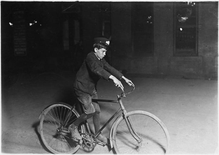 | Keywords: nara:arcid=523085 u.s. national archives usnationalarchives lewis hine lewishine blackandwhite monochrome vehicle bike black and white Original Caption: A.D.T. Messenger Boy. 10 P.M. Indianapolis, Ind, August 1908 U.S. National Archives’ Local Identifier: 102-LH-117 Photographer: Hine, Lewis Subjects: Child Labor National Child Labor Committee Working Conditions Factory Persistent URL: research.archives.gov/description/523085 Repository: Still Picture Records Section, Special Media Archives Services Division (NWCS-S), National Archives at College Park, 8601 Adelphi Road, College Park, MD, 20740-6001. For information about ordering reproductions of photographs held by the Still Picture Unit, visit: www.archives.gov/research/order/still-pictures.html Reproductions may be ordered via an independent vendor. NARA maintains a list of vendors at www.archives.gov/research/order/vendors-photos-maps-dc.html Access Restrictions: Unrestricted Use Restrictions: Unrestricted Original Caption: A.D.T. Messenger Boy. 10 P.M. Indianapolis, Ind, August 1908 U.S. National Archives’ Local Identifier: 102-LH-117 Photographer: Hine, Lewis Subjects: Child Labor National Child Labor Committee Working Conditions Factory Persistent URL: research.archives.gov/description/523085 Repository: Still Picture Records Section, Special Media Archives Services Division (NWCS-S), National Archives at College Park, 8601 Adelphi Road, College Park, MD, 20740-6001. For information about ordering reproductions of photographs held by the Still Picture Unit, visit: www.archives.gov/research/order/still-pictures.html Reproductions may be ordered via an independent vendor. NARA maintains a list of vendors at www.archives.gov/research/order/vendors-photos-maps-dc.html Access Restrictions: Unrestricted Use Restrictions: Unrestricted |